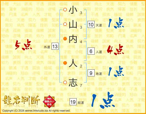 小山内人志さんの総運は19画の1点!