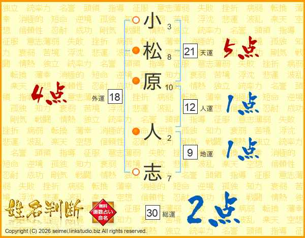 小松原人志さんの総運は30画の2点!