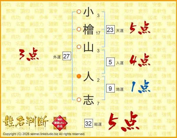 小檜山人志さんの総運は32画の5点!
