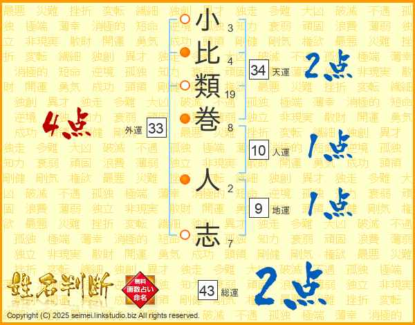 小(3画)比(4画)類(19画)巻(8画) 人(2画)志(7画)