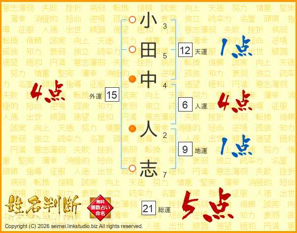 小(3画)田(5画)中(4画) 人(2画)志(7画)