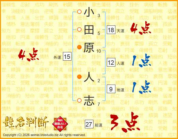 小田原人志さんの総運は27画の3点!