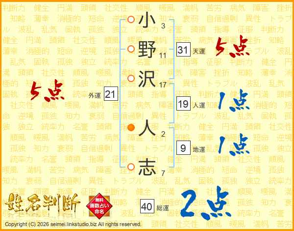 小野沢人志さんの総運は40画の2点!