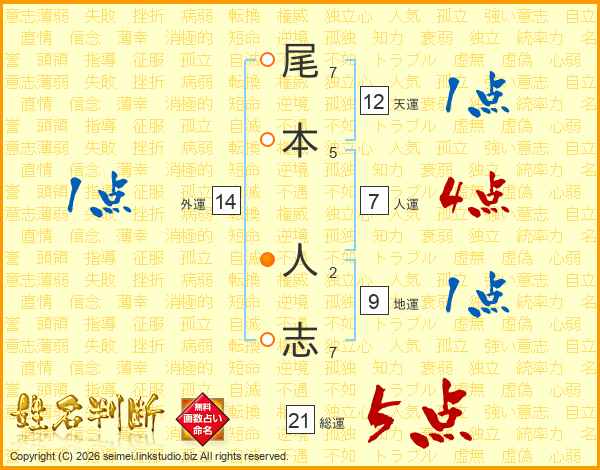 尾本人志さんの総運は21画の5点!