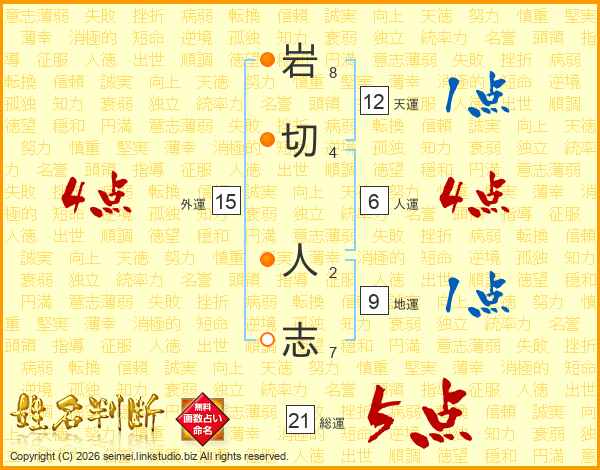 岩切人志さんの総運は21画の5点!