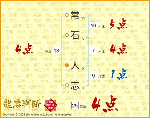 常石人志さんの総運は25画の4点!