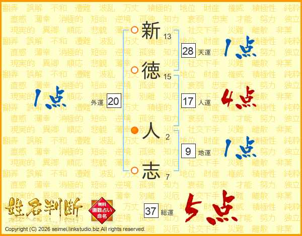 新徳人志さんの総運は37画の5点!