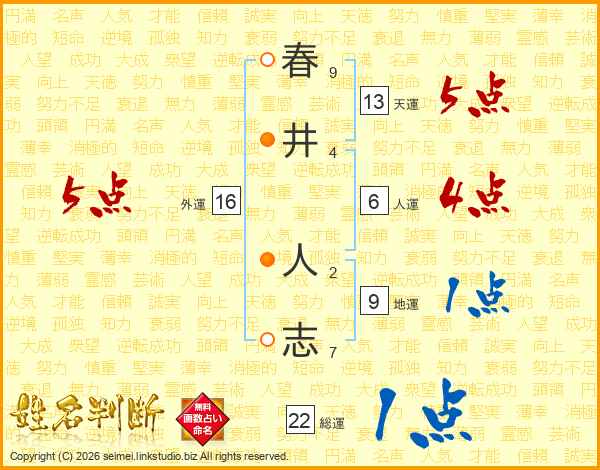 春井人志さんの総運は22画の1点!