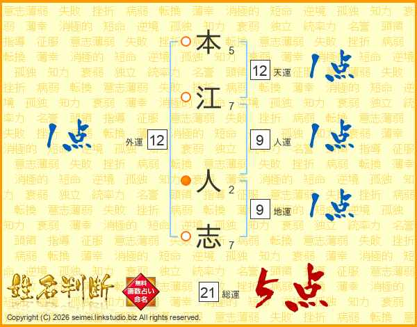 本江人志さんの総運は21画の5点!