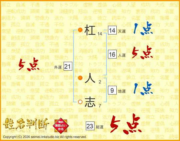 杠人志さんの天運は14画の1点!