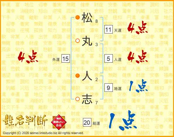 松(8画)丸(3画) 人(2画)志(7画)