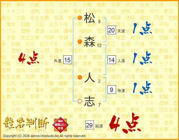 松森人志さんの総運は29画の4点!