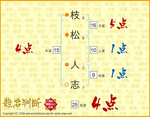 枝松人志さんの総運は25画の4点!