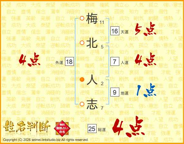 梅北人志さんの総運は25画の4点!