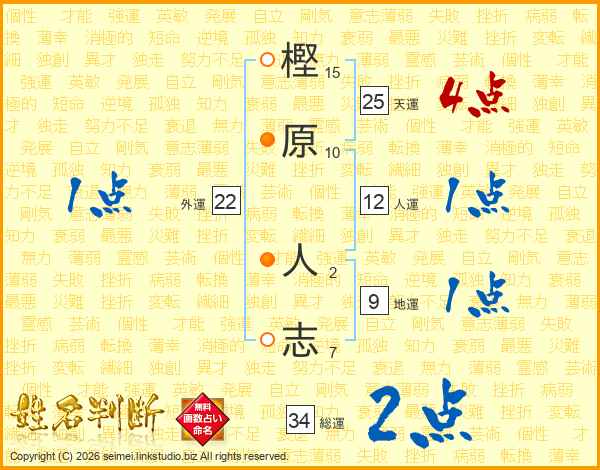 樫原人志さんの天運は25画の4点!