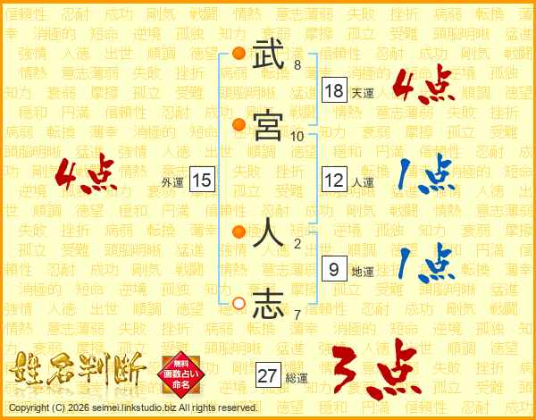 武(8画)宮(10画) 人(2画)志(7画)