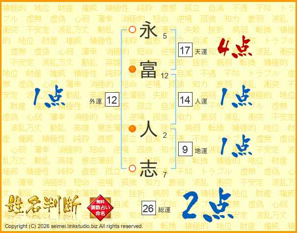 永(5画)富(12画) 人(2画)志(7画)