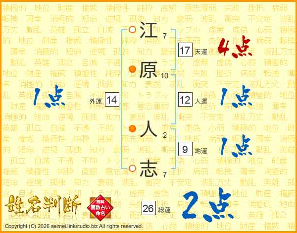 江原人志さんの総運は26画の2点!