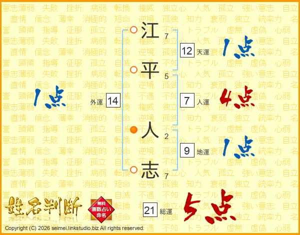 江平人志さんの総運は21画の5点!