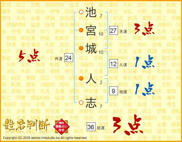 池宮城人志さんの総運は36画の3点!