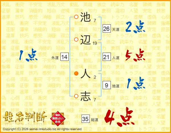 池辺人志さんの総運は35画の4点!