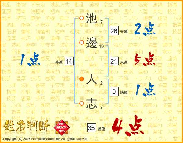 池邊人志さんの総運は35画の4点!