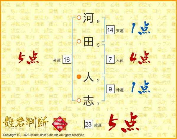 河田人志さんの総運は23画の5点!