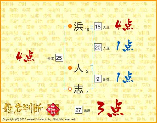 浜人志さんの天運は18画の4点!
