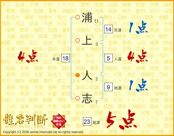 浦上人志さんの総運は23画の5点!