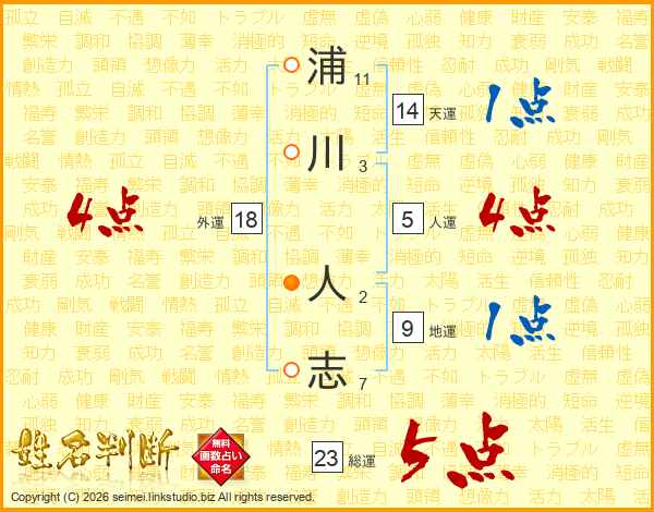 浦川人志さんの総運は23画の5点!