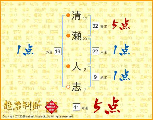 清瀬人志さんの総運は41画の5点!