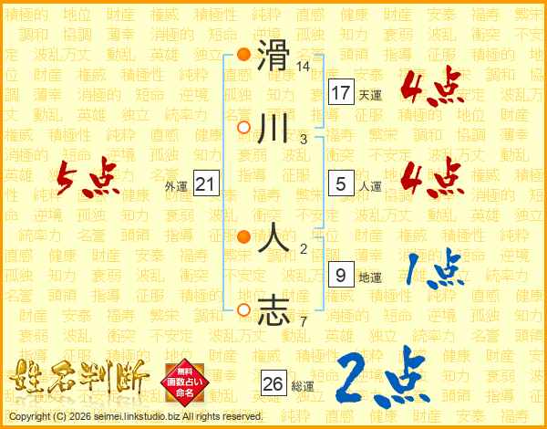 滑川人志さんの総運は26画の2点!