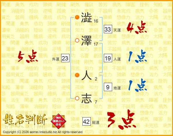 澁澤人志さんの総運は42画の3点!