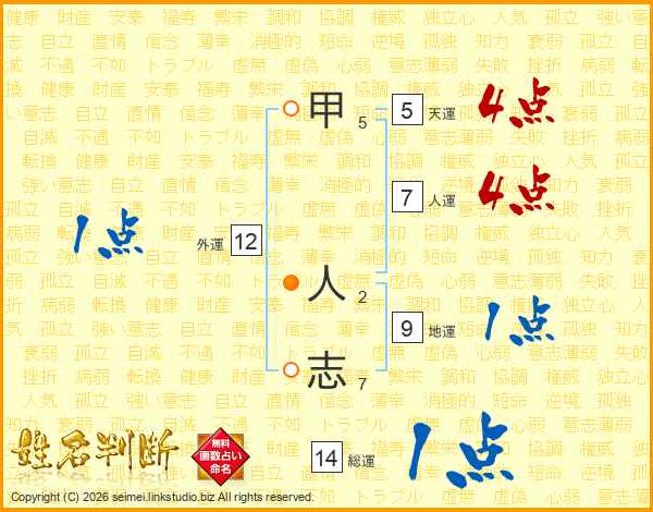 甲人志さんの総運は14画の1点!