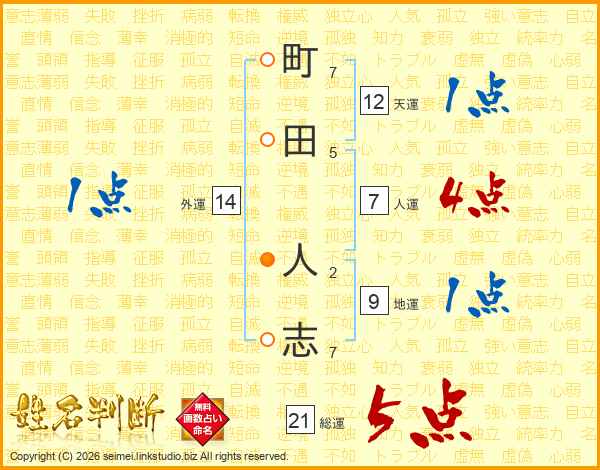 町田人志さんの総運は21画の5点!