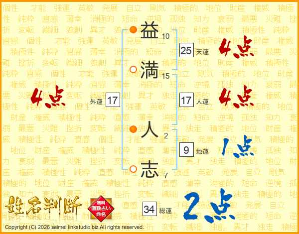 益(10画)満(15画) 人(2画)志(7画)