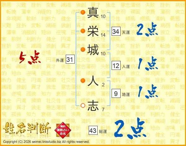 真(10画)栄(14画)城(10画) 人(2画)志(7画)