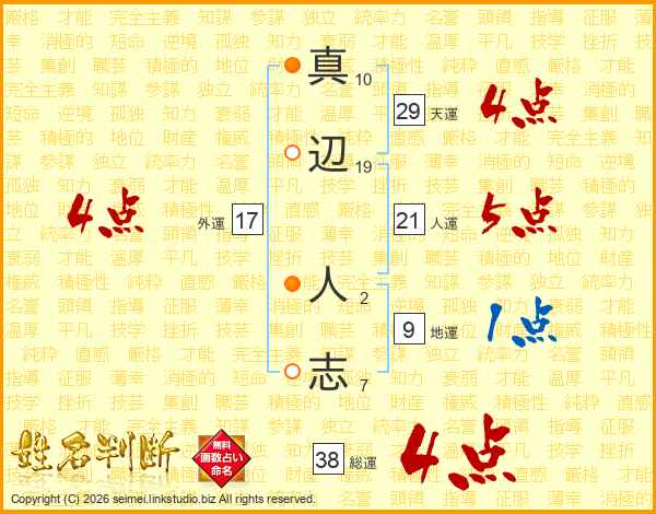 真辺人志さんの総運は38画の4点!
