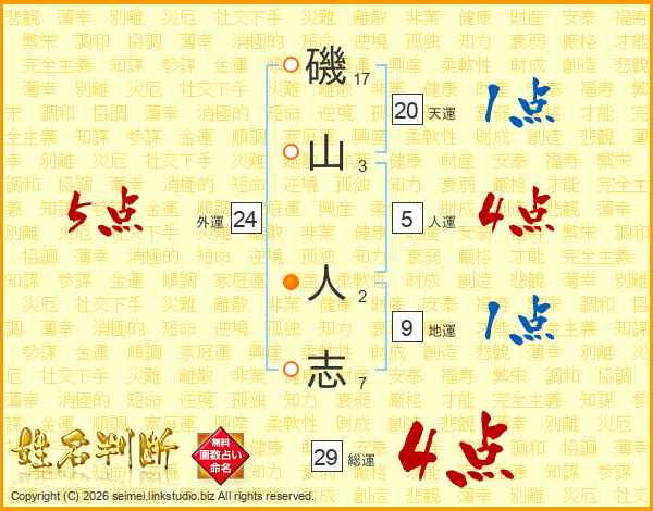磯山人志さんの総運は29画の4点!