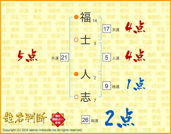 福士人志さんの総運は26画の2点!