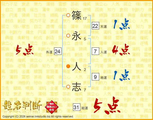 篠永人志さんの総運は31画の5点!