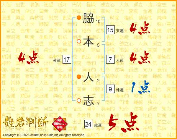 脇本人志さんの外運は17画の4点!