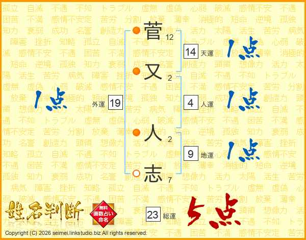 菅又人志さんの総運は23画の5点!