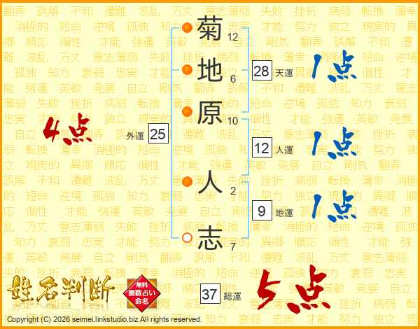 菊地原人志さんの総運は37画の5点!