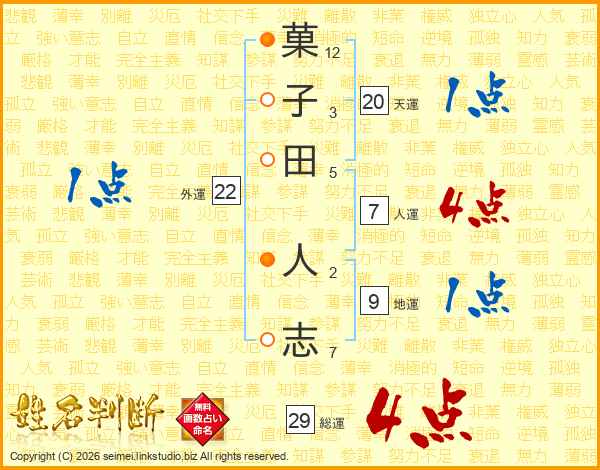 菓子田人志さんの総運は29画の4点!