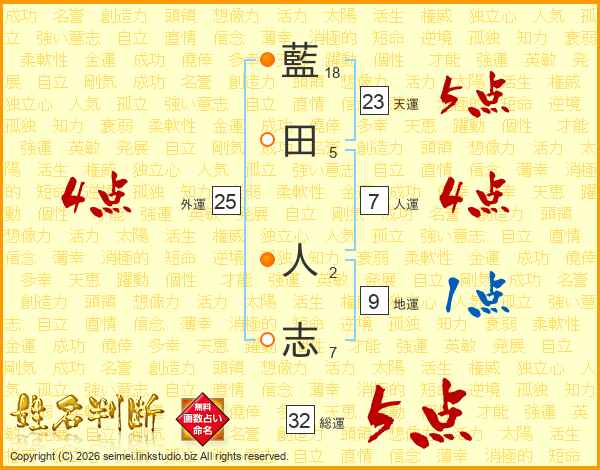 藍田人志さんの総運は32画の5点!