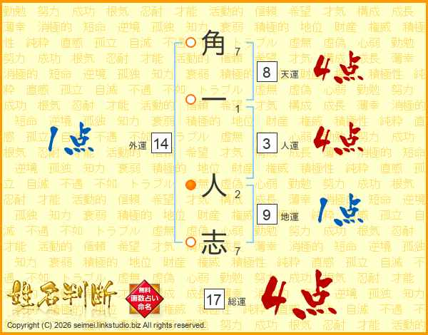 角一人志さんの総運は17画の4点!