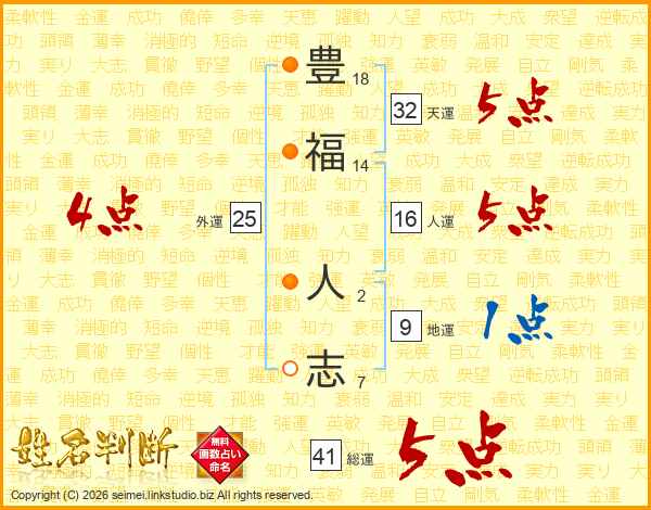 豊福人志さんの総運は41画の5点!