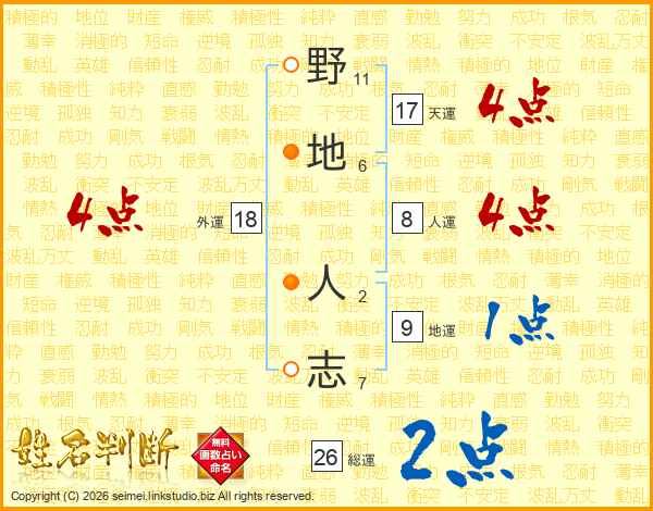 野(11画)地(6画) 人(2画)志(7画)