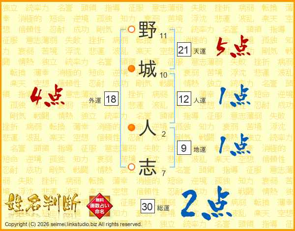 野城人志さんの天運は21画の5点!